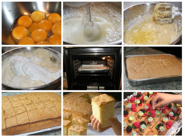 Bizcocho esponjoso de cumpleaños SUPERGIGANTE (3 Kg, 40 raciones): preparación de la receta