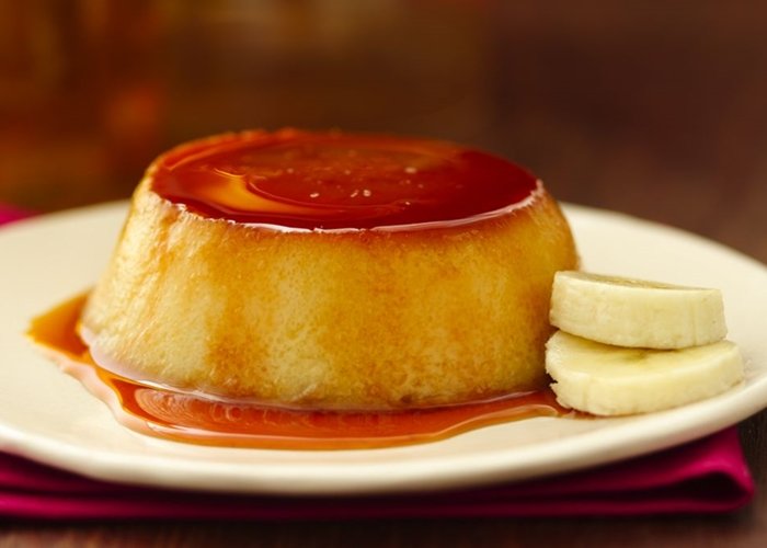 7. Transcurrido este periodo de tiempo, sirve los flanes caseros y espolvorea con canela. Decora con rodajas de plátano.