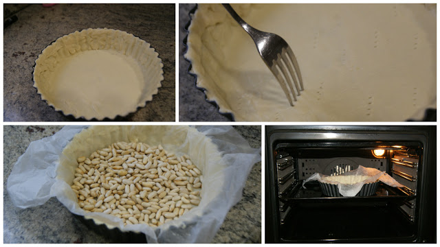 He usado unas alubias, pero puedes usar garbanzos u otro peso teniendo en cuenta que cubra toda la base. Introduce en el horno precalentado a 220º C y colócalo a media altura. A los 10 minutos, retira el papel y las legumbres y deja de cinco a diez minutos más hasta que se dore. Déjala enfriar y ya la tendrás lista para montar la tarta.