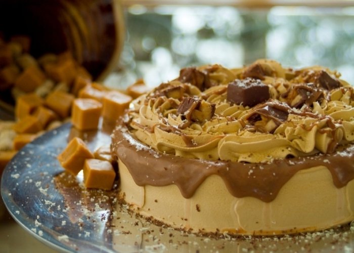 - Cuando la torta helada dulce de leche esté fría y firme, desmóldala y decora con la cubierta, que deberás colocar dentro de una manga pastelera.