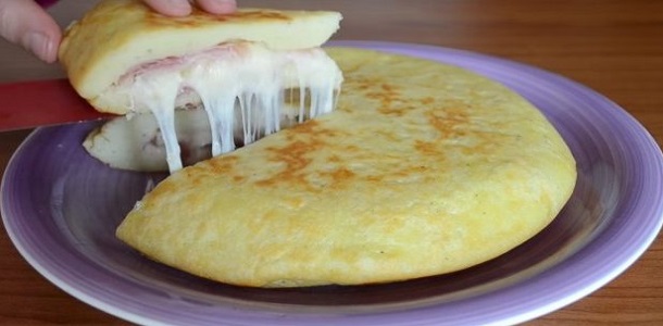 Mira como hacer esta tortilla de papas rellena con jamon y queso. Una comida simple y fácil de hacer que te sacará de apuros.